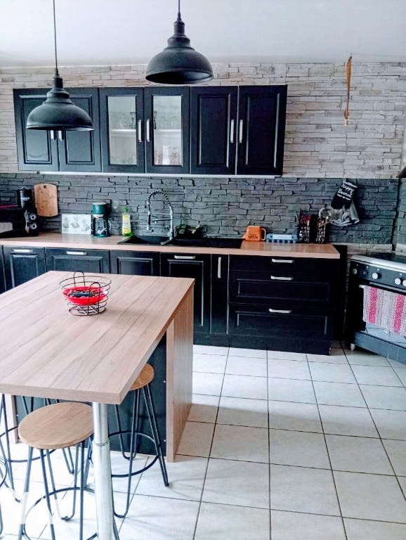 Au rez de chaussée, entrée dans un séjour traversant lumineux ouvert sur une cuisine aménagée avec espace repas.